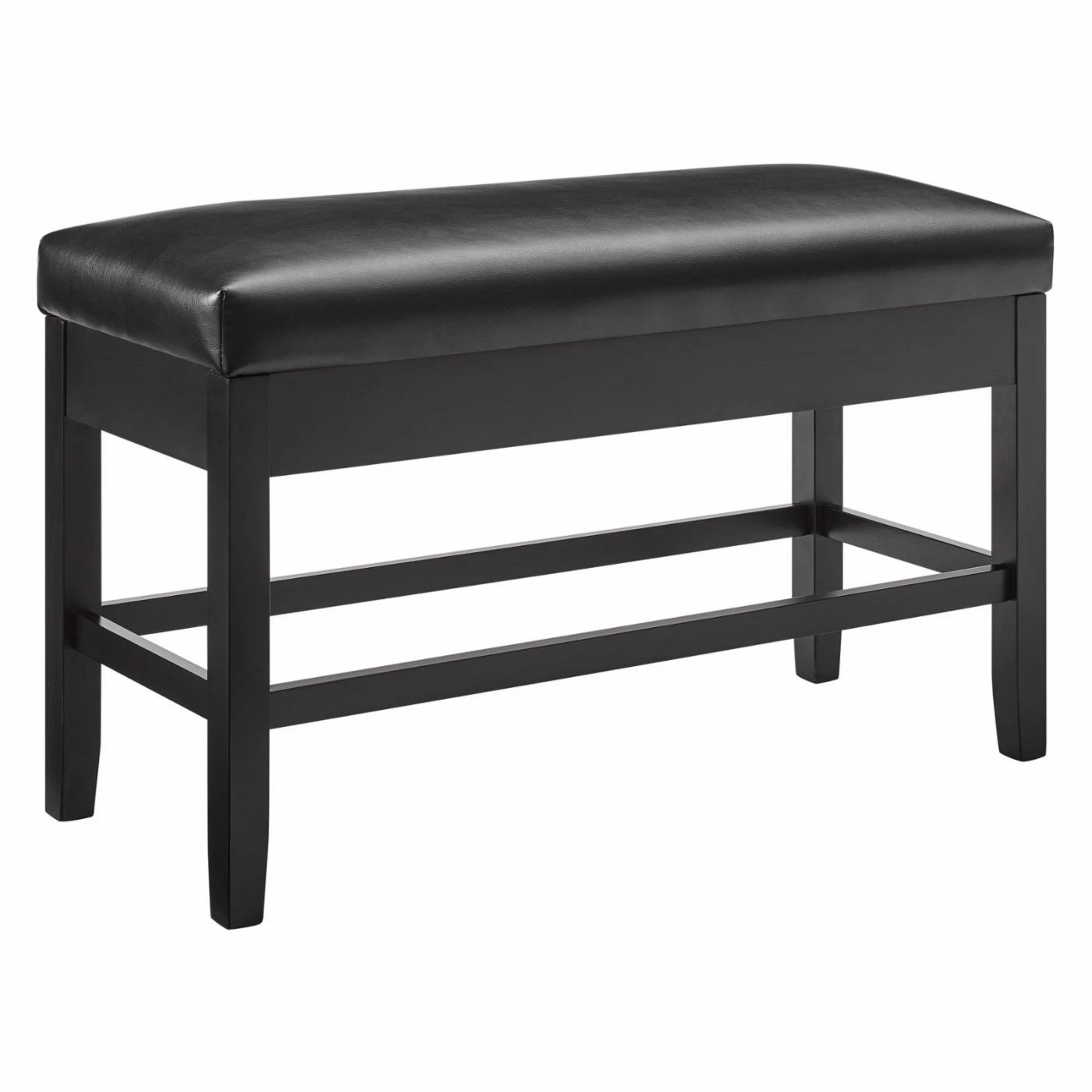 The Steve Silver Co. Carrara Counter Dining Bench with Storage combines function and style. Constructed of solid rubberwood in a black finish, this bench has a padded foam seat upholstered in black faux leather. The top lifts off to reveal storage underneath for your extra linens, candles, or other knickknacks. With its monochromatic color scheme and clean lines, this backless bench has a sleek design. Use it with your dining set, or use it as additional seating in other rooms. Pair this piece with other items from the Carrara Collection on Hayneedle.com to create a cohesive look for your home.