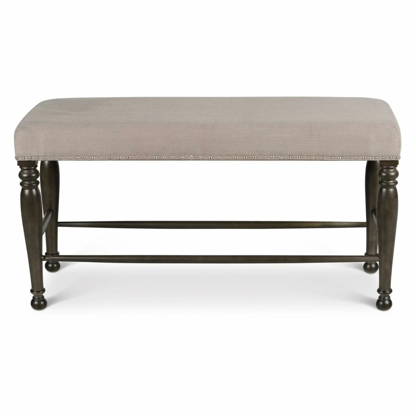 Dine in style with the Steve Silver Co. Caswell Counter Dining Bench. This backless bench has solid rubberwood legs and stretchers in a sleek gray finish. The padded seat is upholstered in beige polyester. Nailhead trim and turned legs add visual interest to the piece. With its sophisticated design and elegant silhouette, this bench goes with a variety of home dΓ©cor styles. Pair this piece with other items from the Caswell Collection on Hayneedle.com to create a cohesive look for your dining room or kitchen.