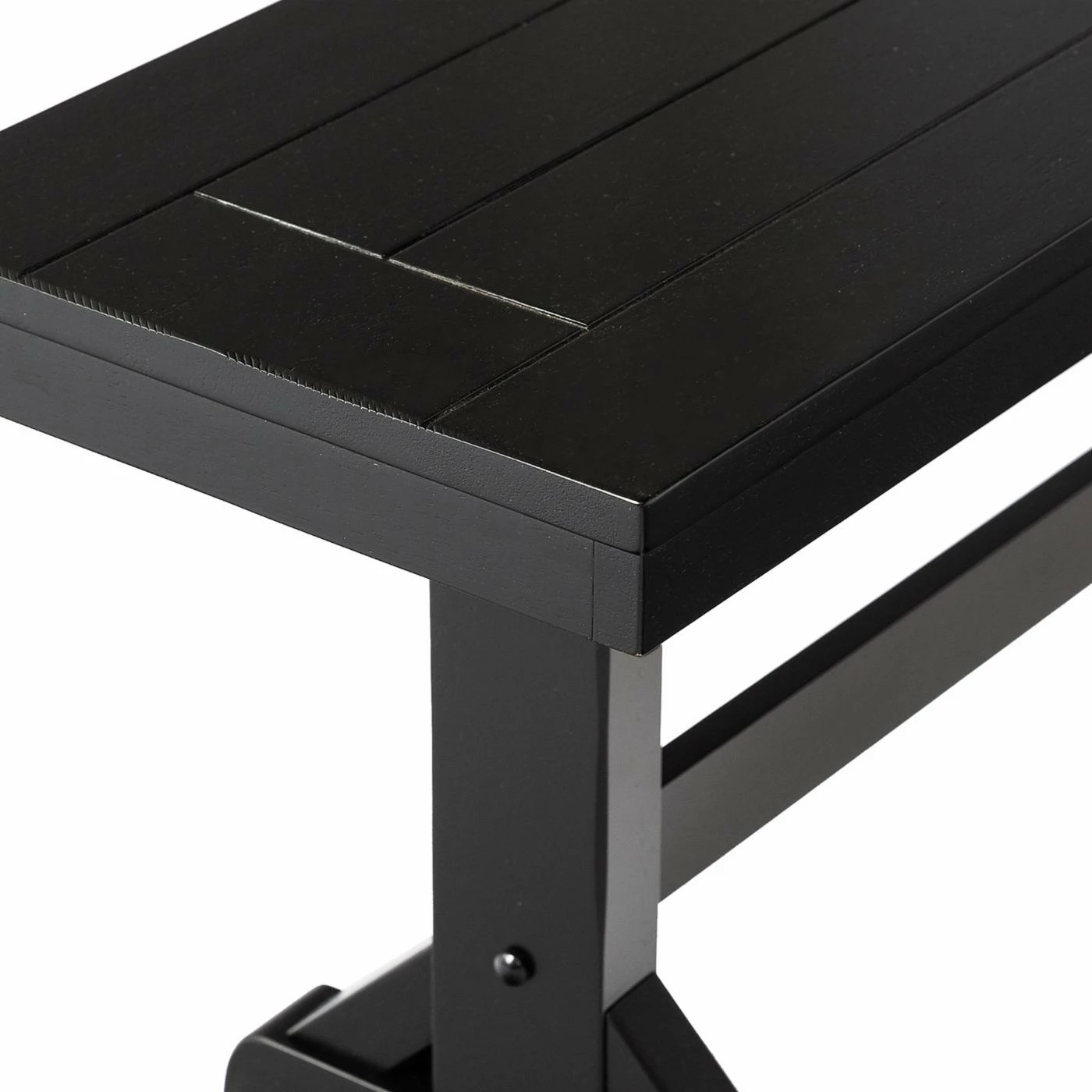 - Trestle base adds stability and rustic appeal