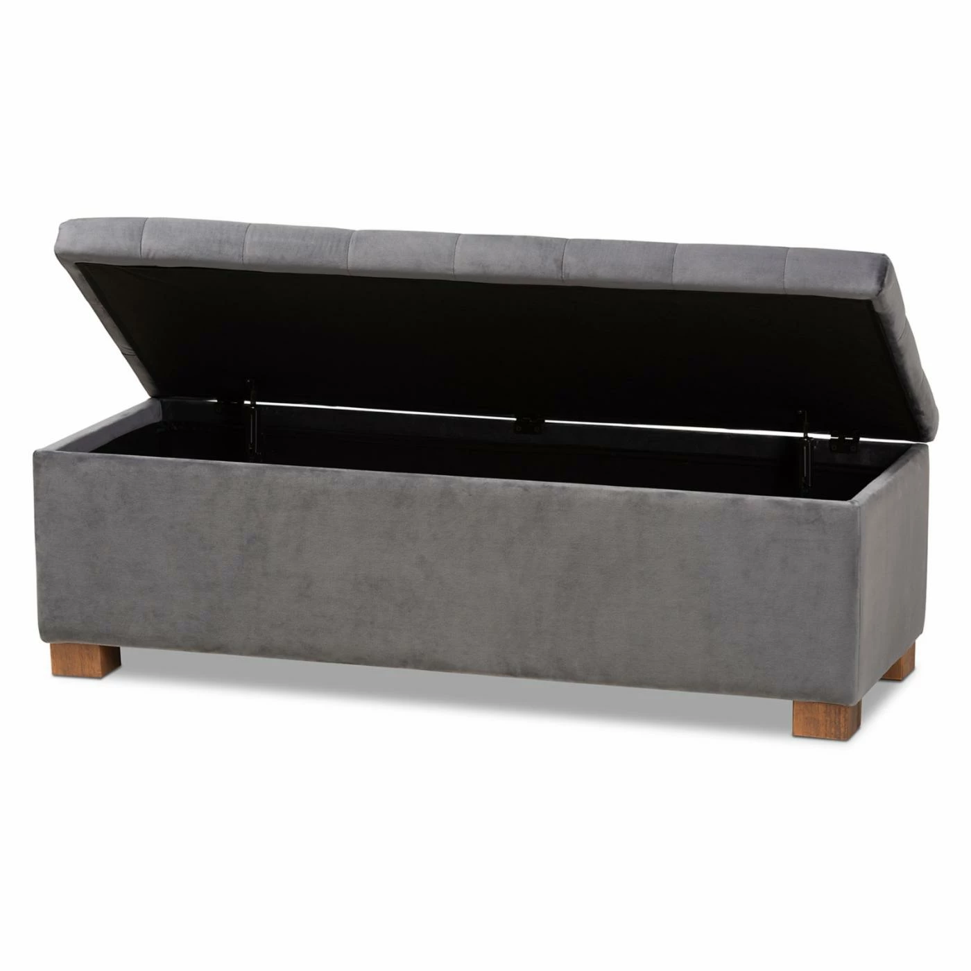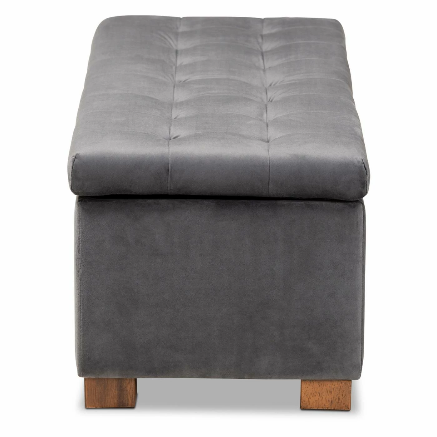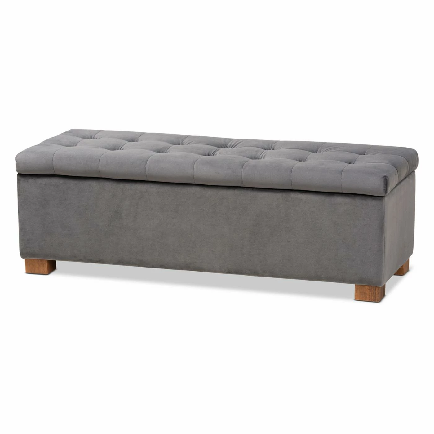 Add storage and style to your space with the Baxton Studio Roanoke Velvet Tufted Storage Ottoman Bench. This backless storage bench can also be used as an ottoman or coffee table. Upholstered in soft, velvet polyester, the padded seat features tufted details. The lid opens to reveal plenty of storage for extra linens, pillows, or other knickknacks. Choose from available fabric colors to find the Baxton Studio Roanoke Velvet Tufted Storage Ottoman Bench that works best for your living room, family room, or bedroom.