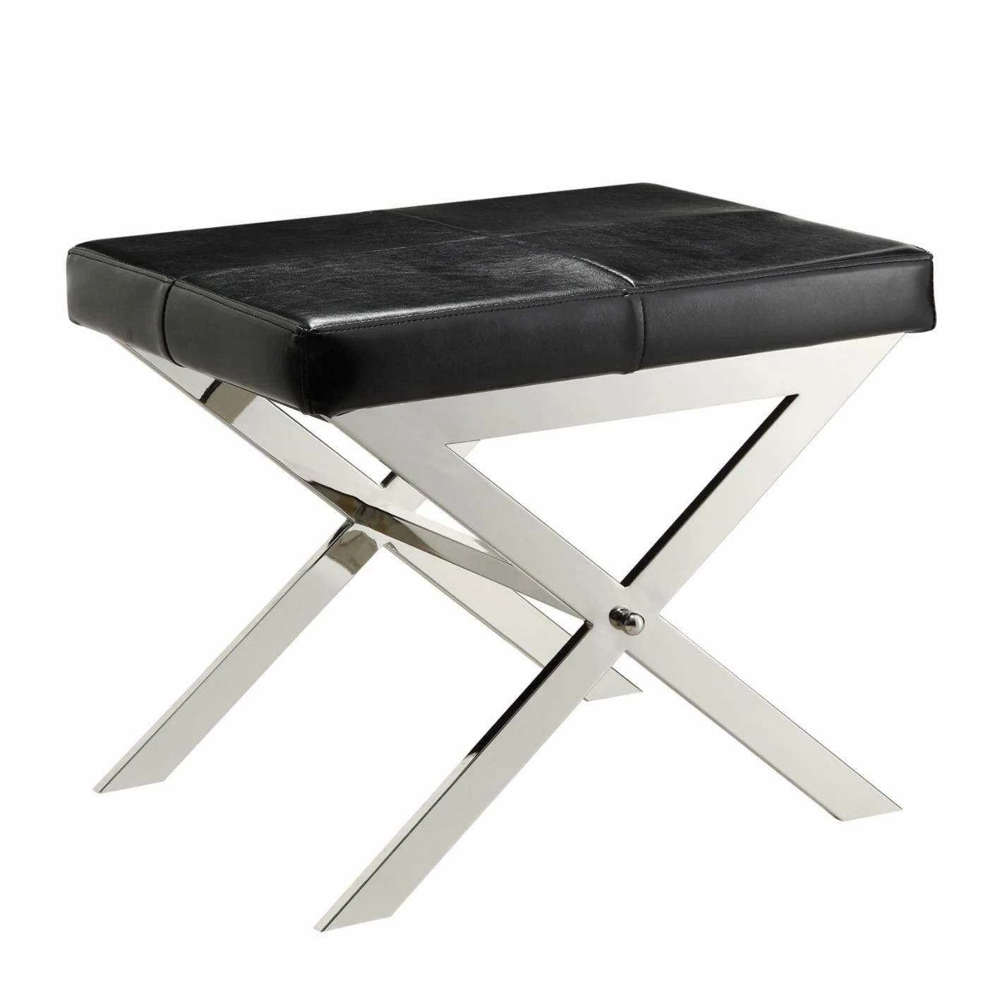 Sleek and smooth, the Chelsea Lane 22 in. X-Base Bonded Leather Stool provides additional seating in style. This stool features a foam-filled padded cushion upholstered in luxurious black bonded leather. Its X-base metal frame comes in a polished chrome finish that adds to its modern appeal.