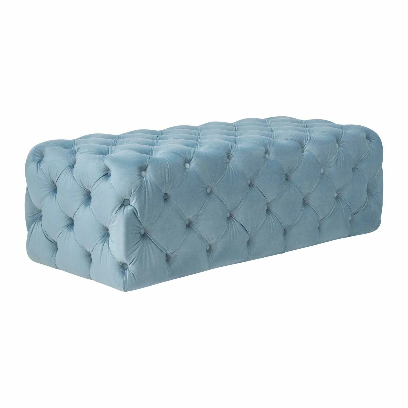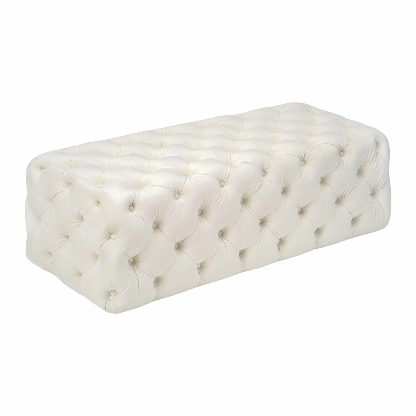 The TOV Furniture Kaylee Ottoman Bench brings visual and tactile glamour to your modern living room or bedroom. Add this ottoman as extra seating in your living room or add a tray to the top and use it like a coffee table. It also adds dimension to a simple bedroom when placed as a bench at the foot of your bed. The ottoman has a solid, kiln-dried wood frame that is completely covered with luxe velvet upholstery in your choice of available color. The velvet is button tufted all over with diamond stitching for plenty of cozy texture.