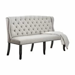 Appreciate the finer things in life in every aspect of your home, starting with the Benzara Tufted Upholstered Setee Bench. This setee-style bench is features wingback sides and curved legs, all supported by durable wood with a distressed black finish. Generous layers of foam pad the seat and backrest, upholstered in handsome gray fabric. The backrest has deep diamond tufting for a classical allure, emphasized by large bronze nailhead trim.