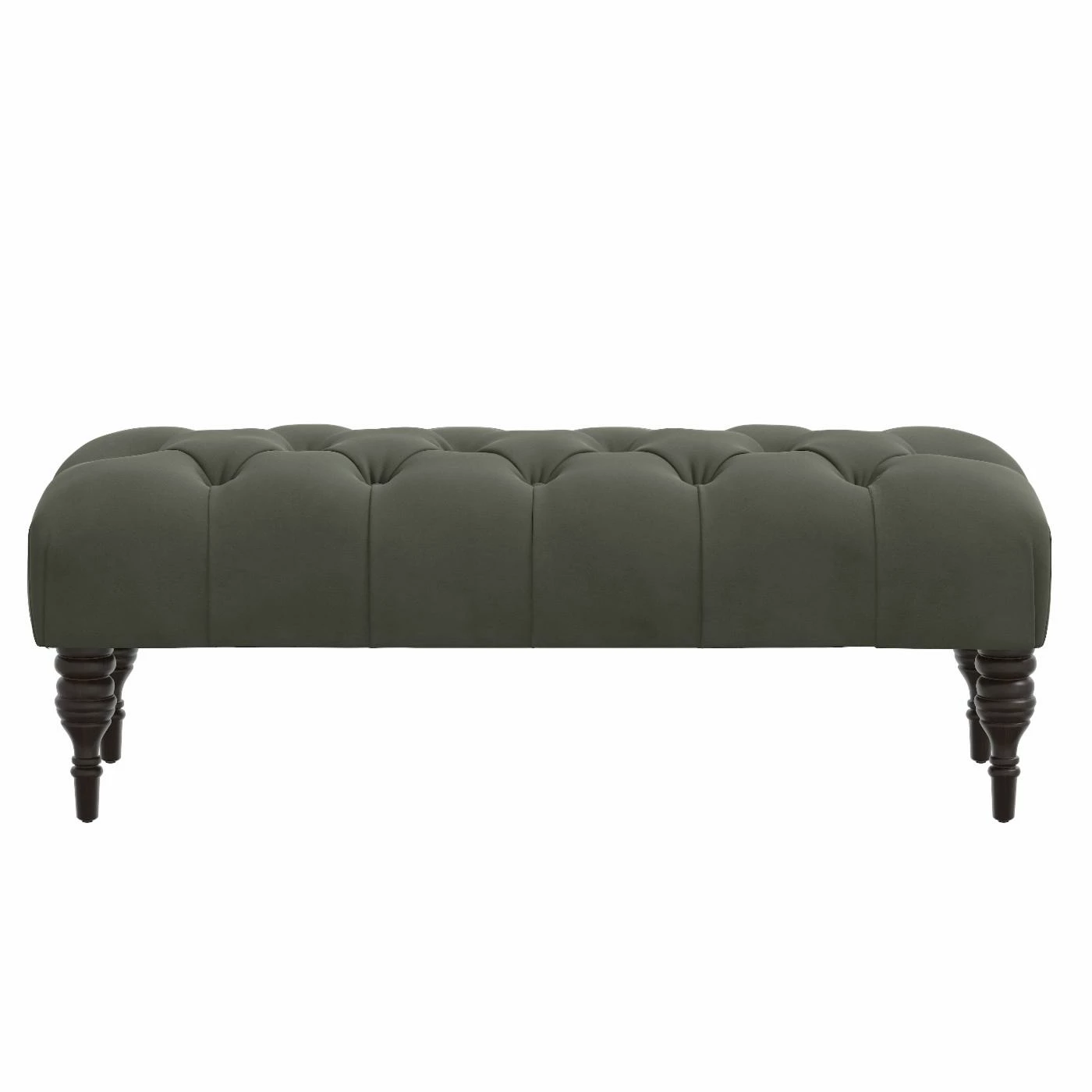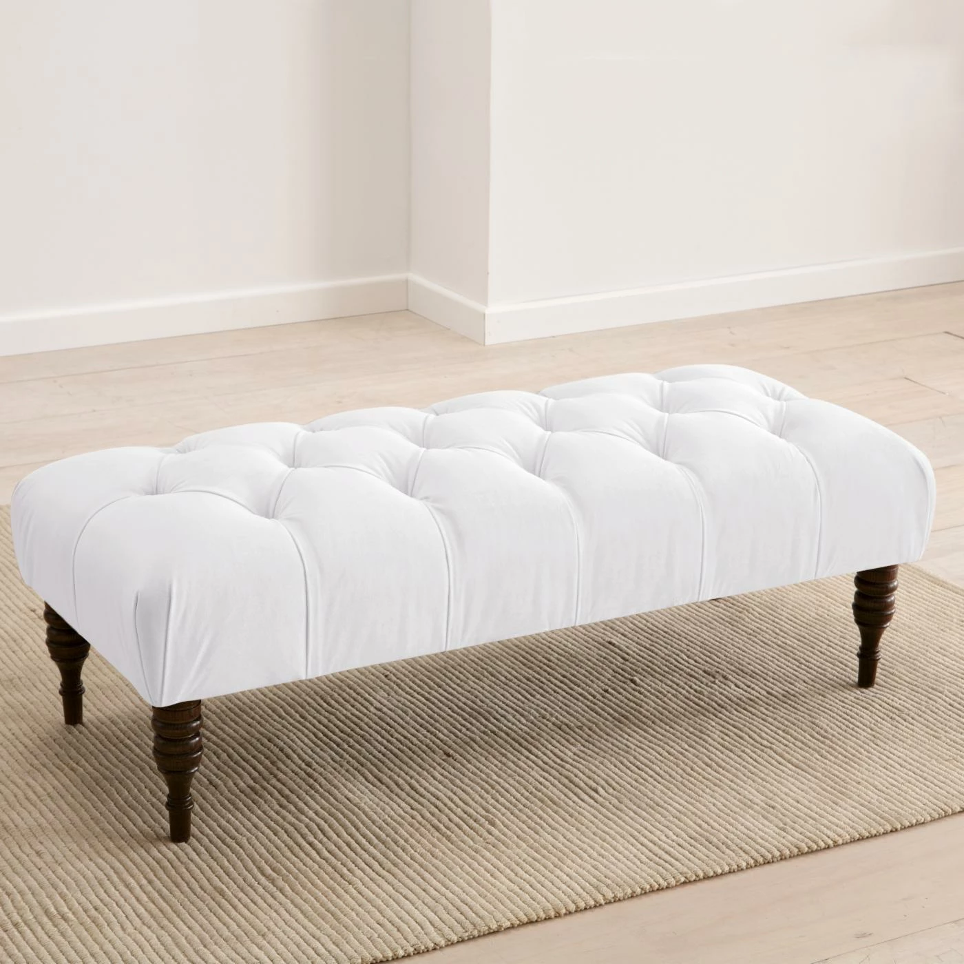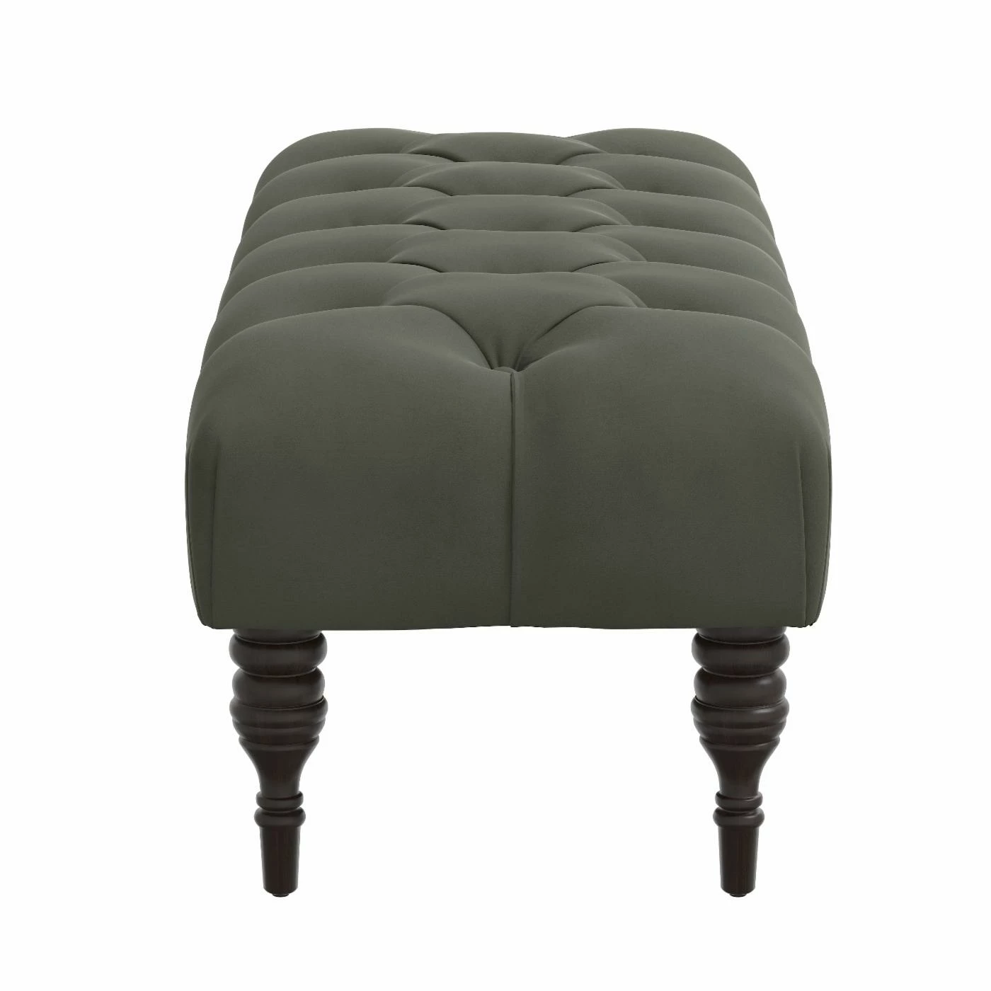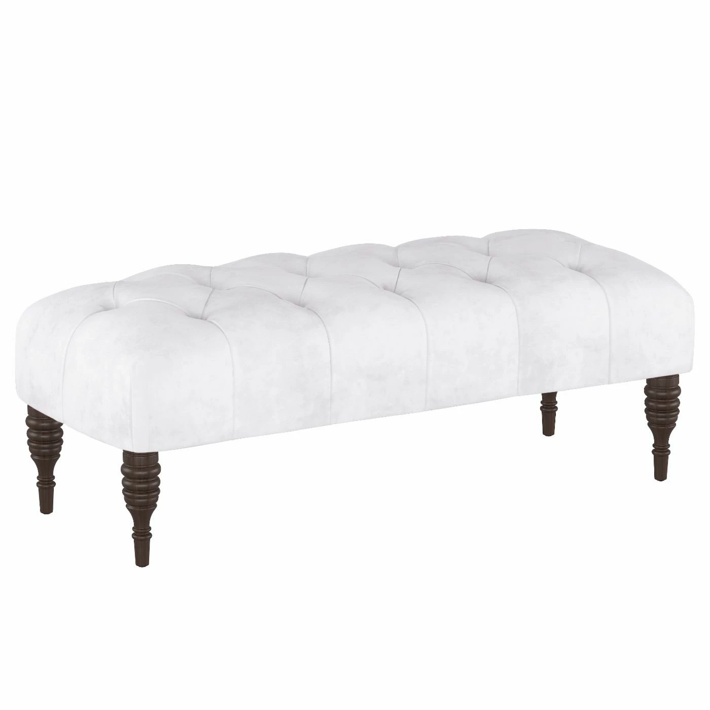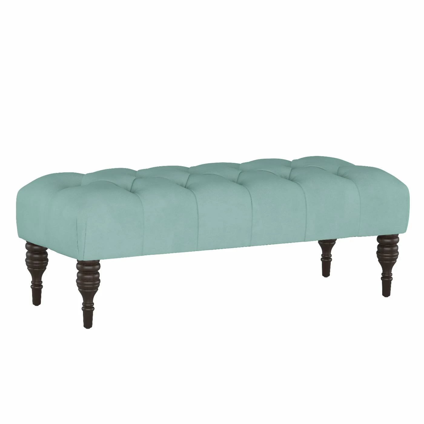 Complete the look of your master bedroom with the luxurious Velvet Tufted Bench. This bench is deeply tufted for traditional style, thickly cushioned for comfort, and stands on four elegantly turned solid pine legs.